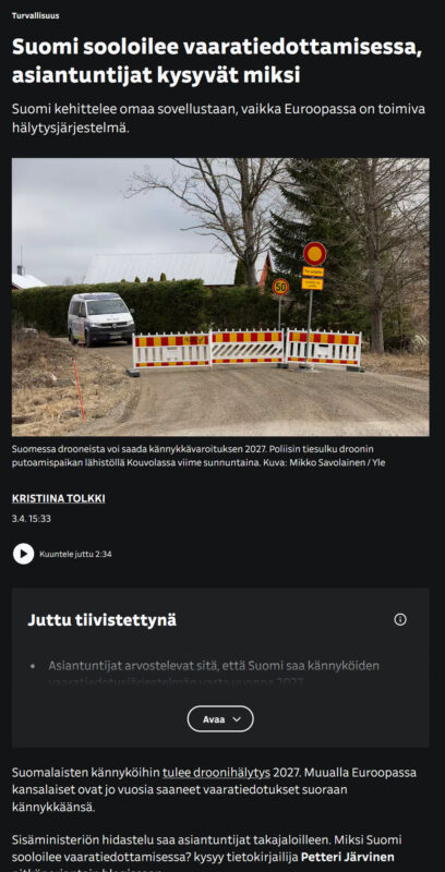Lue artikkeli: Suomi sooloilee vaaratiedottamisessa, asiantuntijat kysyvät miksi (3.4.2026)